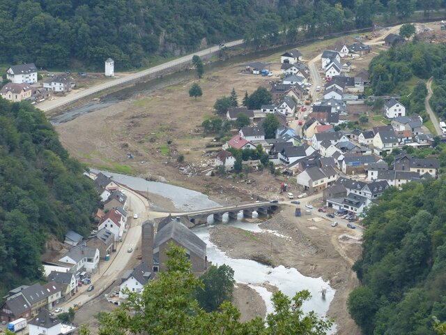 Auch die Infrastruktur wird wiederaufgebaut. Die Deutsche Bahn möchte bereits Ende 2025 den Betrieb der Ahrtalbahn wiederaufnehmen. Die gesamte Bahnstrecke bis zum Endpunkt Ahrbrück war zerstört und wurde erst bis Walporzheim wiederaufgebaut. Aber die Vorarbeiten laufen und alle hoffen, dass die wichtige Strecke von Walporzheim bis Ahrbrück, die vor der Flut bestand und die nicht nur für die Bewohner des Ahrtals, sondern auch für Touristen essenziell ist, bald wiedereröffnet werden kann.
