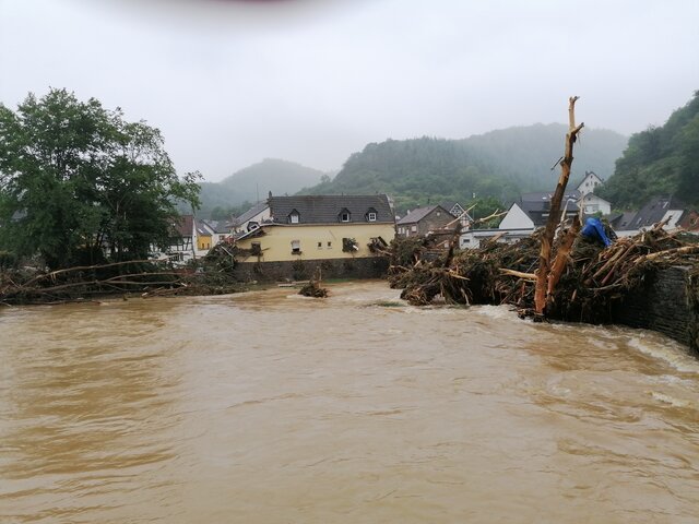 In der Dorfmitte wurden Gebäude durch den Bruch der Brücke und die explosionsartige Wassergewalt von den Fluten einfach mitgerissen. Eine vierköpfige Familie, bestehend aus einem Zwillingspaar sowie Mutter und Vater mit ihnen. Die Mutter und die kleine Tochter kamen ums Leben, der Vater und der kleine Sohn harrten stundenlang an einen Baum geklammert im Ahrbogen aus. Sie wurden am 15. Juli per Hubschrauber gerettet. Die Hubschrauber, die in der Nacht die Katastrophe filmten, konnten die Rettungssuchenden aufgrund fehlender Seilwinden nicht evakuieren.
