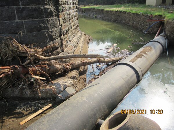 Auch die Kläranlage „Adenauer Bach“, die sich nur 250 Meter von der Bachmündung entfernt auf der gegenüberliegenden Ahr-Seite befindet, kam glimpflich davon. Das Hochwasser züngelte dort lediglich bis ans Tor. Das hat die 1993 in Betrieb genommene Anlage dem ehemaligen Bahndamm zu verdanken, der schützend zwischen Kläranlage und Ahr verläuft. Der Durchbruch durch den Damm, der beim Bau der Anlage für die Zufahrt geschaffen wurde, erwies sich allerdings als Schwachstelle. Trotzdem: Schon eine Woche nach dem Hochwasser ging die Anlage auf dem gereinigten und mit Maschinen getrockneten Gelände wieder ans Netz. Die Verbandsgemeinde Adenau als Betreiberin und die Verbandsgemeinde Altenahr, deren Kläranlagen in Altenahr am Ausgang des Langfigtals und in Mayschoß durch die Flut komplett zerstört wurden, planen, die Abwässer von der ehemaligen Kläranlage Altenahr künftig ebenfalls in Dümpelfeld zu klären. Außerdem wurden Pläne entwickelt, auf dem Gelände des Dümpelfelder Klärwerks eine Biogasanlage zu bauen und mit der Kläranlage zu kombinieren.