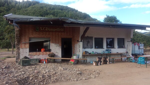 „Zum Glück wurde in unserer Gemeinde beim Hochwasser im Juli 2021 niemand schwer verletzt oder getötet“ fasst Robert Reuter, Ortsbürgermeister von Dümpelfeld, zusammen. In den Ortsteilen Dümpelfeld, Niederadenau und Lückenbach richtete die Flut dennoch gewaltige Schäden an. Eine Familie musste nach der Flut ihr Haus verlassen, um es zu sanieren und bald wieder einzuziehen. Hausabrisse gab es im Tal des Adenauer Bachs nicht. Das lag vor allem daran, dass im Einzugsgebiet des Adenauer Bachs, anders als in den Einzugsgebieten von Trier-, Sahr- und Vischelbach vergleichsweise wenig Regen fiel. Beim Hochwasser vom 12./13. Juni 1910 war der Adenauer Bach einer der Hauptzubringer der Ahr; 2021 hingegen war die Menge des Wassers, das er in seinen Mündungsfluss transportierte, etwas geringer. Dass es die Orte zwischen Adenau und Dümpelfeld nicht schlimmer traf, führt Reuter aber auch auf ein Regenrückhaltebecken zurück. Dieses wurde 1988 im Exbachtal, wenige Meter neben dem Nürburgring-Streckenabschnitt Ex-Mühle gebaut, um das Gewerbegebiet „Im Broel“ vor möglichen Exbach-Hochwassern zu schützen.