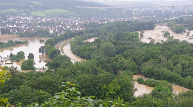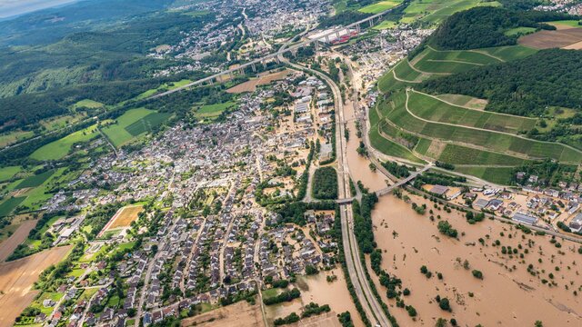Besonders im Bereich des Heimersheimer Bahnhofs stauten sich die Wassermassen auf. Dort bleiben im Engpass zwischen den Steilhängen der Landskrone und der aufgeschütteten Umgehungsstraße der B 266 nur etwa 30 Meter an Breite. Bei Ehlingen hingegen, wo das Tal sich Richtung Rheinmündung öffnet, hatte sich das Wasser am 15. Juli 2021 auf eine Breite von einem Kilometer ausgedehnt.