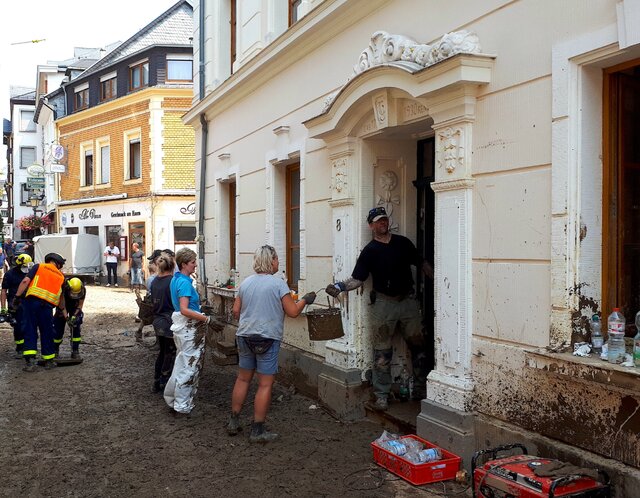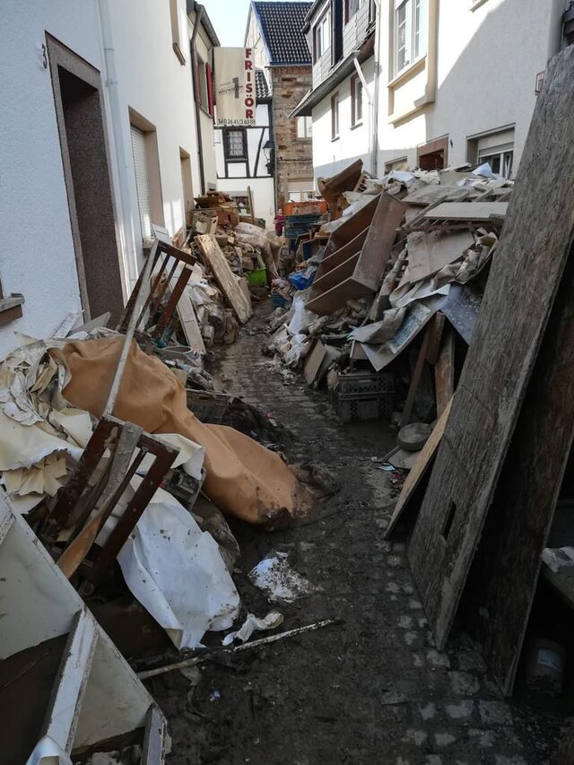 Unnötigen Verlust erlitt hingegen die Aloisius-Jugend. Ihr Magazin im Keller der Grundschule wurde geflutet und ortsfremde „Helfer“ entsorgten beim „Aufräumen“ auf Nimmerwiedersehen Musikinstrumente, Uniformen, Säbel, Fahnen oder Armbrüste in Containern. Schaden: 80.000 Euro. Nicht gut gelaufen. Ebenso die Aktion eines ehemaligen Oberst der Bundeswehr, der mit der rechten Szene zugeordneten Leuten die Grundschule als Anlaufstelle für einige Zeit quasi besetzt hielt. Ende Juli machte die Stadt dem Spuk ein Ende. Derselbe Oberst stand später im Rahmen des „Putschversuchs der Reichsbürgerszene“ auf der Fahndungsliste des Bundeskriminalamtes.