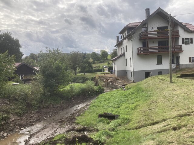 Am Mittwoch, 14.07.21 sind enorme Wassermassen durch Nordrhein-Westfalen und Rheinland-Pfalz geflossen, auch durch das Gemeindegebiet Blankenheim. Dabei führte der Regen, der Tage zuvor schon gefallen war und während des gesamten 14. Juli andauerte, sehr schnell zu der Hochwasserkatastrophe, die schließlich die ganze Region verwüstete. Rund 140 Liter pro Quadratmeter wurden mittwochs am Klärwerk Blankenheim gemessen. Die Ahr, die nah an ihrer Quelle eigentlich noch recht beschaulich durch das Tal fließt, trat meterweise über ihre Ufer und jedes kleine Bächlein wurde zum Sturzbach. Mit den ersten Zuflüssen der Ahr nur wenige Kilometer von der Quelle entfernt schwoll der Fluss so stark an, dass das Tal, hier noch zumeist aus Wiesen bestehend, geflutet wurde. Teilweise drückte das Grundwasser nach oben. Es war kaum nachvollziehbar, von wo überall plötzlich Wasser herbeiströmte.