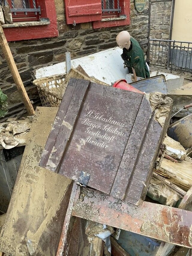 Um das Museumsgut zu retten, bedurfte es vieler Hände. Allein war dies nicht zu schaffen. Ein Hilferuf an die eigenen Schützenbrüder wäre vergebens gewesen, da ich sie aufgrund von fehlendem Strom und Internetzugang nicht erreicht hätte. Die meisten von ihnen waren selbst von der Flut betroffen.